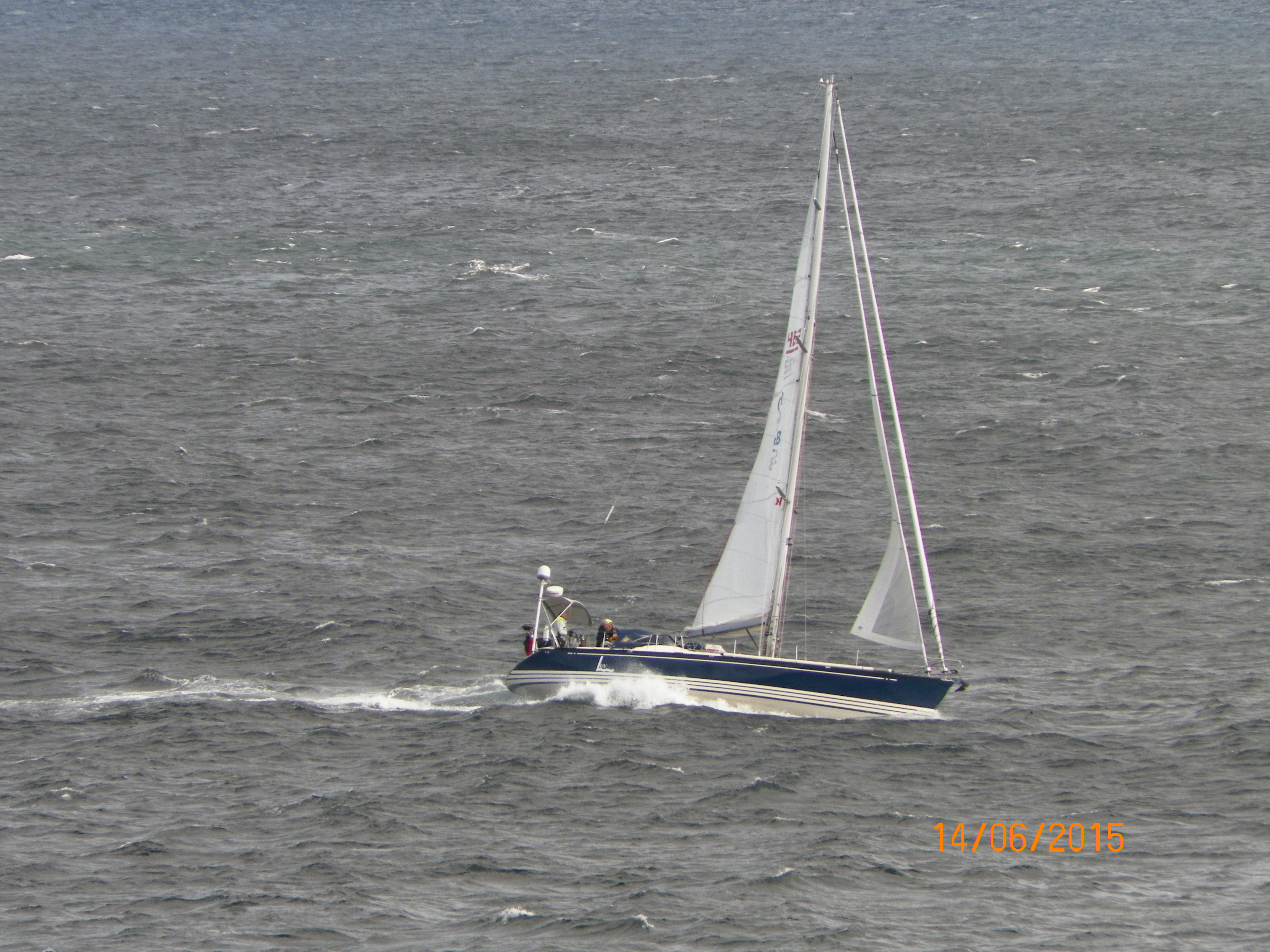 Leider feilt das Wetter auf seine Vorhersage. Der Wind brist kräftig bis zur Sturmstärke auf, er dreht zurück und er wird kälter. Gegen zehn Uhr müssen alle Mann an Deck und alle Segel Bergen. Vor Topp und Takel rutschen wir noch mit fünfeinhalb Knoten die Wellenberge hinunter.